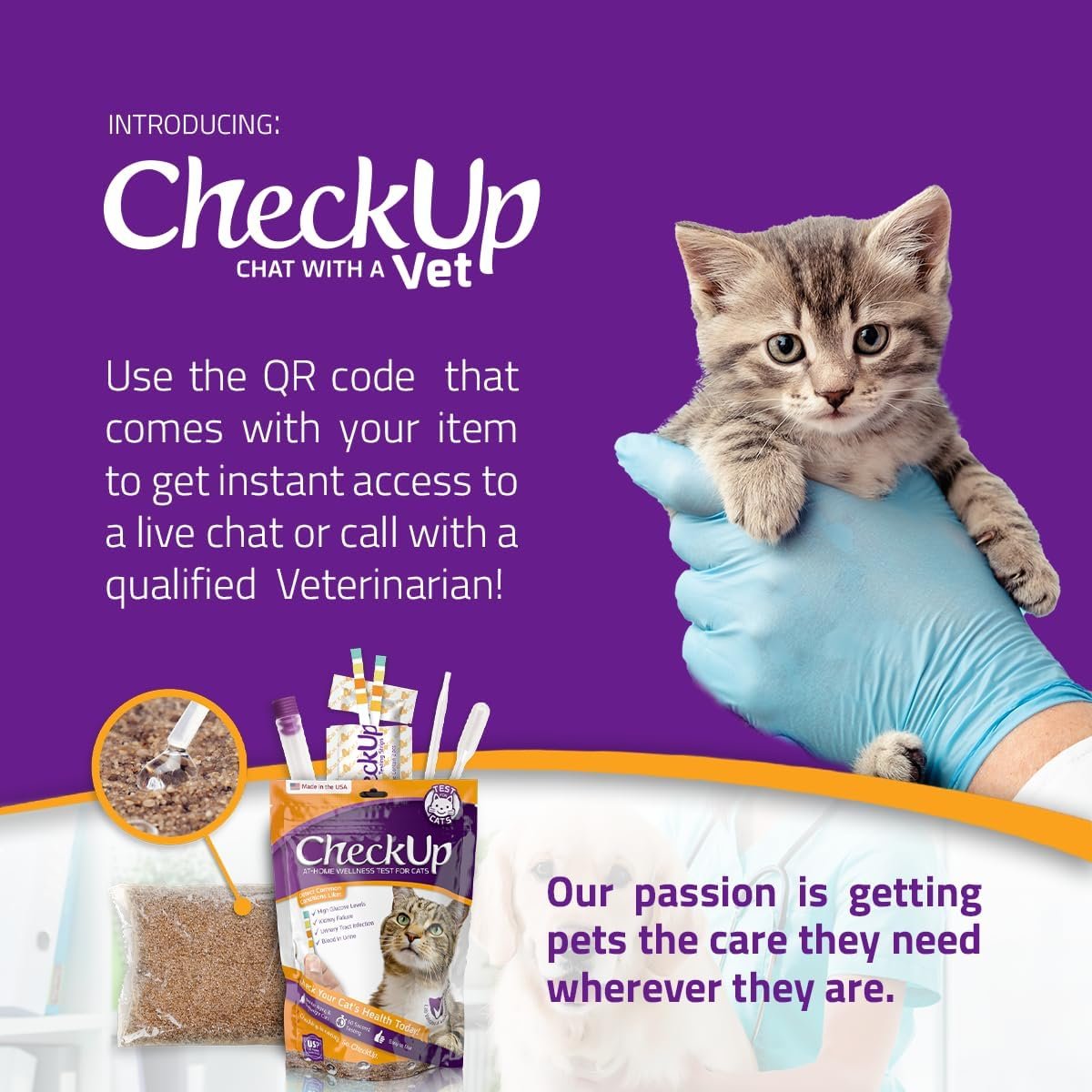 Be the first to review “CheckUp at Home Wellness Test Kit for Cats | 2lb Hydrophobic Litter for Urine Collection, 2 Test Strips for the detection of the 4 most common health Indicators – pH, Protein , Glucose, Blood in urine”