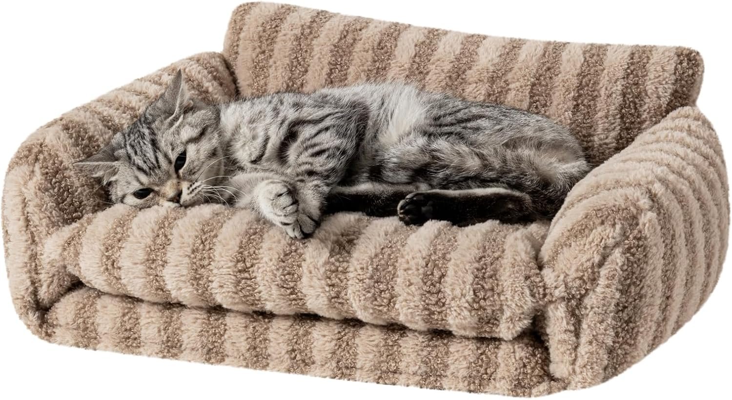 Hollypet Cat Bed Fluffy Plush Mutifuctional Double-Layer Soft Pet Couch Orthopedic Sofa Nest Beds for Small Cats and Dogs, Khaki (21x15x8 inch)