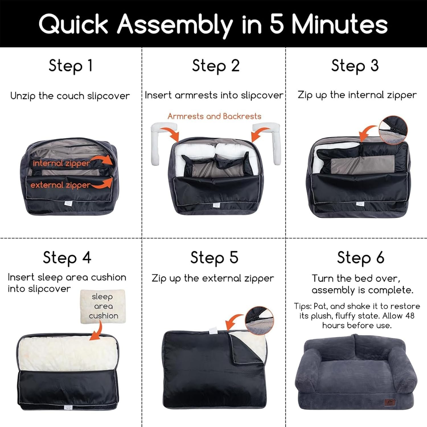 【Assemble Tips】The Hollypet cat bed will arrive as a vacuum-packed bed in a box, please carefully unpack the cat sofa couch, then pat and shake it to make sure it is completely fluffy and wait 48 hours before using the pet bed