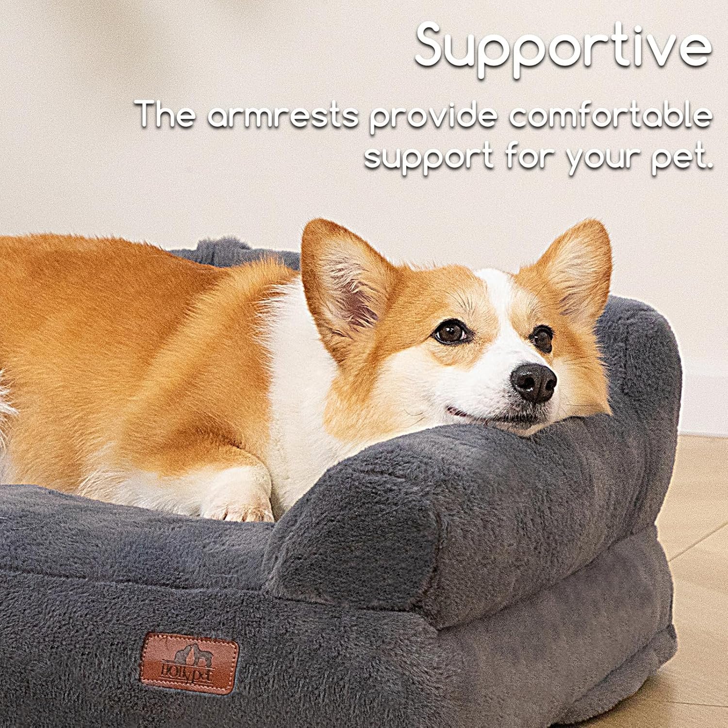 Hollypet Fluffy Plush Dog Cat Pet Couch Soft Calming Sofa Bed for Medium Small Cats and Dogs, Gray, M