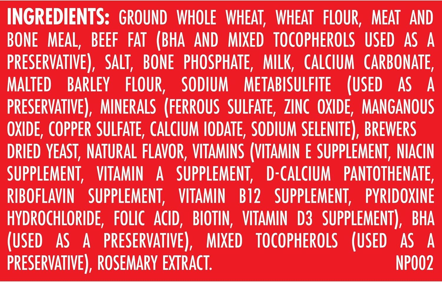 Give your dog tasty fun every day with Milk-Bone Original Dog Biscuits. These medium dog treats deliver that irresistible, classic crunch and tail-wagging meaty taste dogs can’t get enough of in every bite. But the great taste isn’t the only thing to love about these dog snacks. Their crunchy texture helps clean teeth and reduce tartar build-up to make those sloppy doggy kisses even more enjoyable. Plus, they’re made with more than 12 vitamins and minerals, and they’re produced in Buffalo, New York, USA. Add a box to your cart, and fill every day of doglife with more love (and deliciousness).