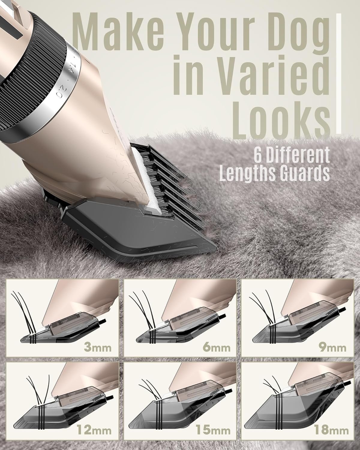 Designed for Beginners: It comes with 6 guide combs(3/6/9/12/15/18mm) and a charger that allows for use while charging. With a one-touch start-up in just 1 second. Quick to master, show off your pet’s fresh new look to the neighbors—crafted by you!